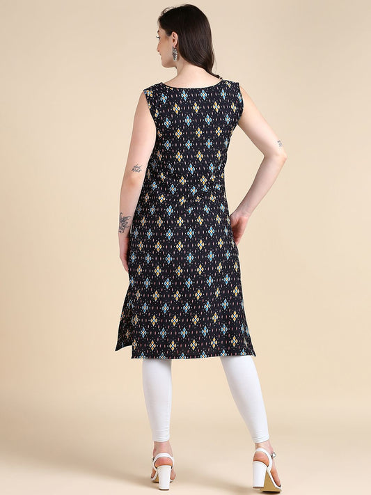 Women's Sleeveless Boat Neck Solid Casual Fancy Long Kurtis