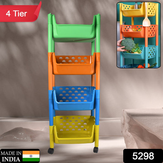 4 Layers Fruit & Vegetable Basket Trolley Plastic for Home and Kitchen Fruit Basket Storage Rack Organizer Holders Kitchen Trolley