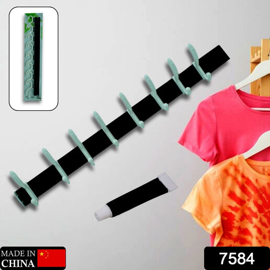 CLOTH HANGER, WALL DOOR HOOKS RAIL FOR HANGING CLOTHES FOR HANGING HOOK RACK RAIL, EXTRA LONG COAT HANGER WALL MOUNT FOR CLOTHES, JACKET, HATS, 8 HOOK WITH ECO-FRIENDLY LIQUID ADHESIVE GLUE