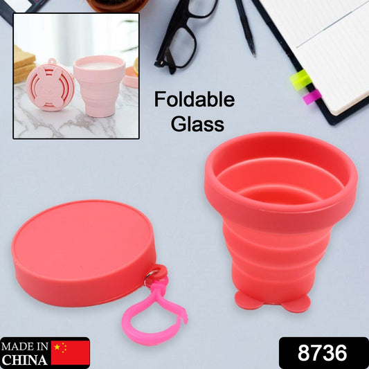Reusable Folding Silicone Tumbler / Glass / Cup, Folding Cups with Reusable Lid, Silicone Folding Cup with Clip Hook Folding Travel Cup Bag for Travel, Camping, Sports (1 Pc)