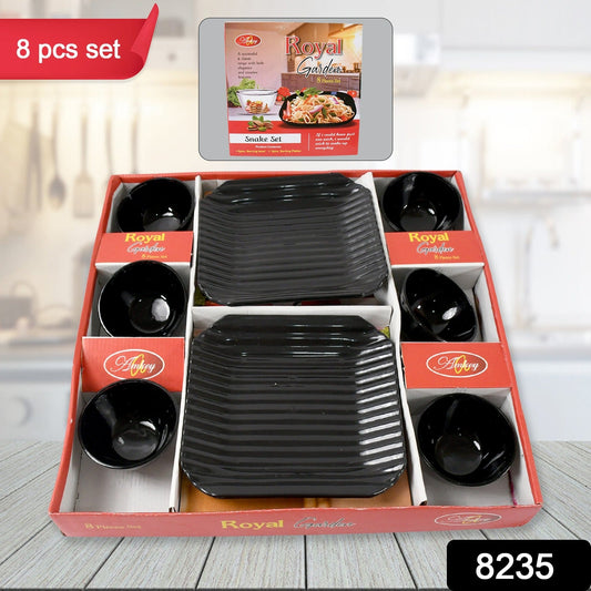 Royal Garden Round Ceramic Bowl With Plastic Square shape Serving platter Portable, Lightweight Breakfast, Serving Bowl | Highly Durable Material | Ideal for Rice, Pasta, Desserts Home & Kitchen Serving Bowl & platter (8 Pcs set)