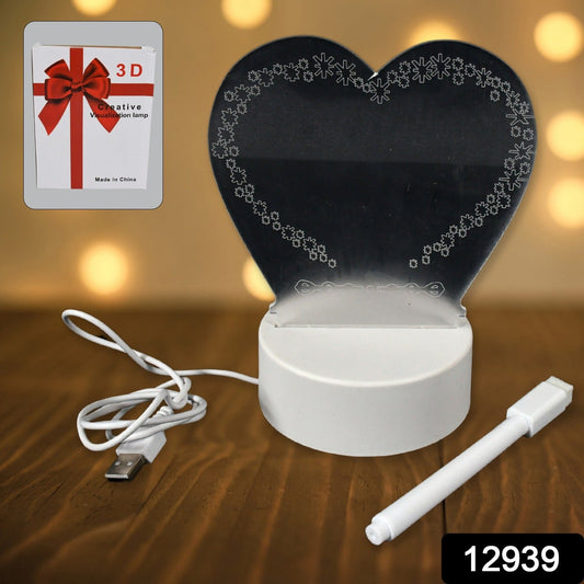 Creative Visualization Lamp 3 D Acrylic Decorative Lamp for Creative Keeps Notes Drawing Table Lamp for Home Decor / Bedroom / Gift / Office Decoration / Erasable Board (Heart-Shape / 1 pc)