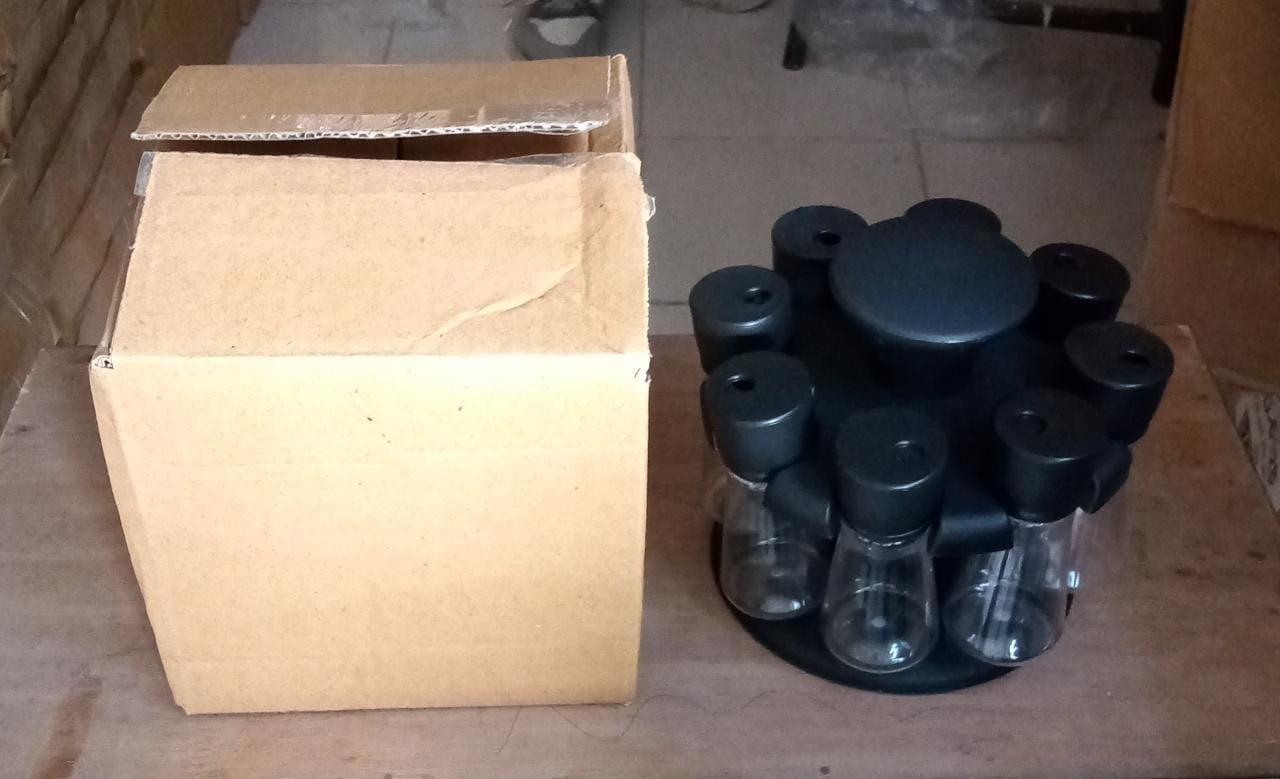 Totally Different Design Of Spice Containers. This Spice Container Has More Space To Accommodate More Ingredients than Usual Spice Available In Market . Caps have the steel finishing which Makes Its Looks Attractive. Rack Is Easily Rotable In Any Direction For Easy Picking Of Bottle. Its It is Easy To Use And Easy To Wash. The Unique Design Is Look Different For Kitchen.
