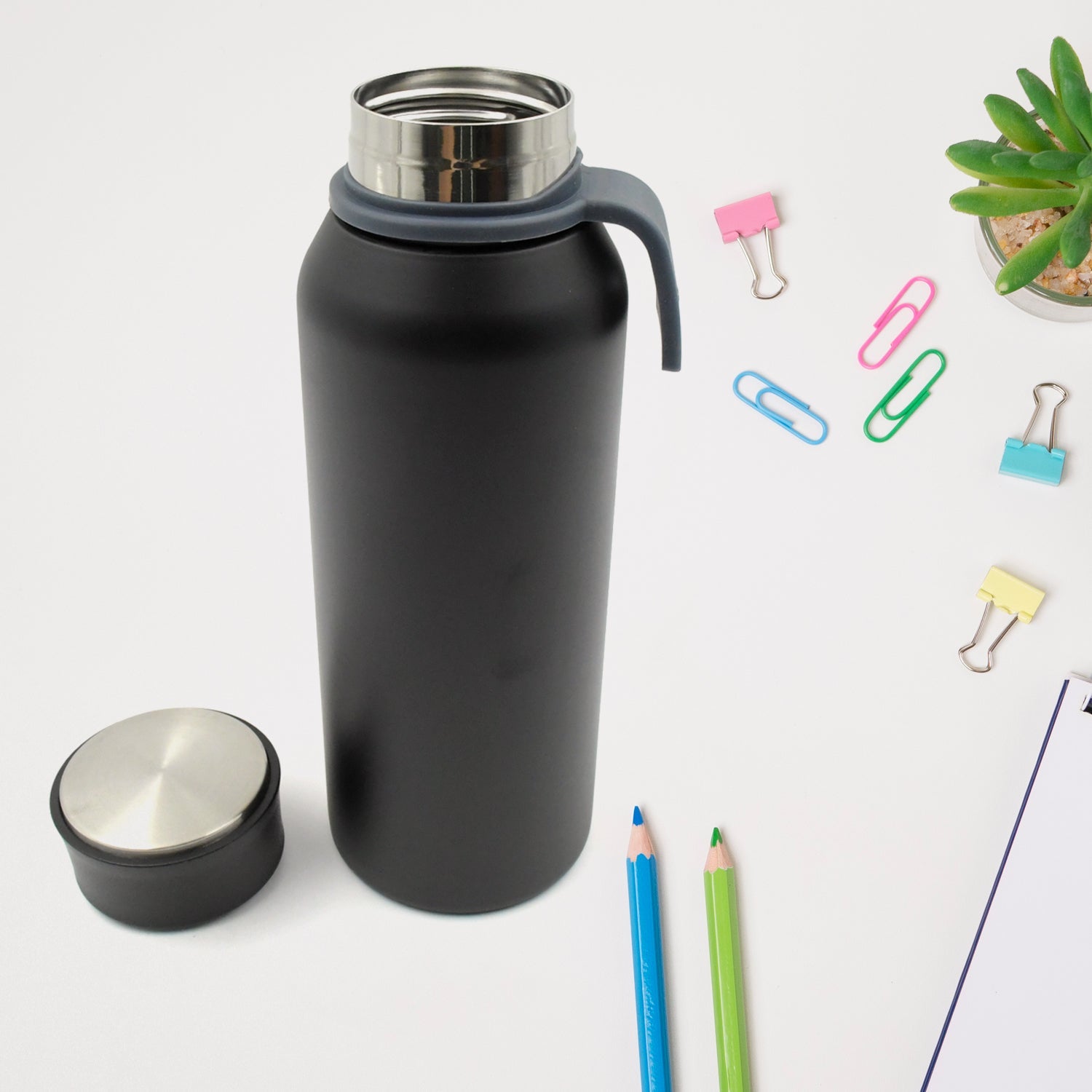 - NO LEAKS: The travel water bottle comes with a leak proof, insulated, BPA and Phthalates free cap. The stainless steel lid will prevent any accidental spills. This multifunctional water bottle is easy to grab, while you are on the go.