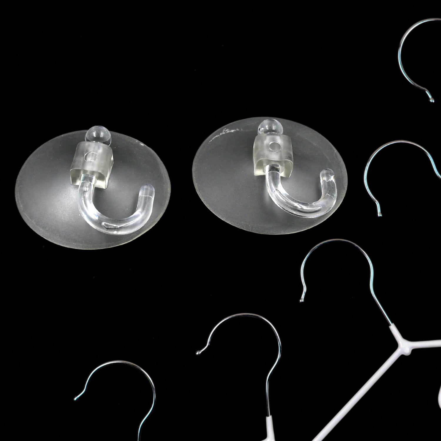 - The Transparent Rubber Vacuum Sucker Hooks are the perfect solution for organizing your home. Crafted with strong suction power, these hooks can be securely attached to bathroom, kitchen, and window walls with ease. Best of all, each hook comes with two pieces of transparent rubber, for a cleaner, more professional look. Enjoy stress-free home organization.