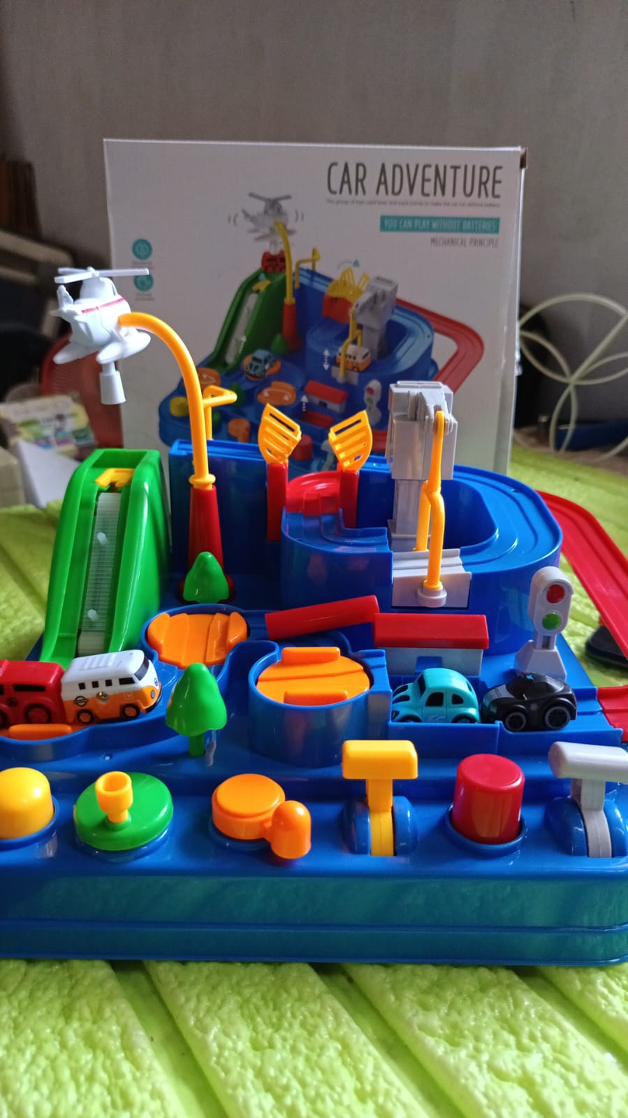 - Skills & Intellectual Development: Your child interacts with the mini car through various obstacles and finally reaches the end by operating the buttons. This car adventure toy can exercise kid hand-eye coordination, creativity, thinking ability and motor skills. The track table vehicle set is designed with a unique color matching to stimulate kids' color cognition.