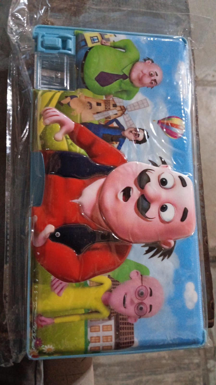 - Compass Box: This carton printed pencil case comes with 2 Compartments.