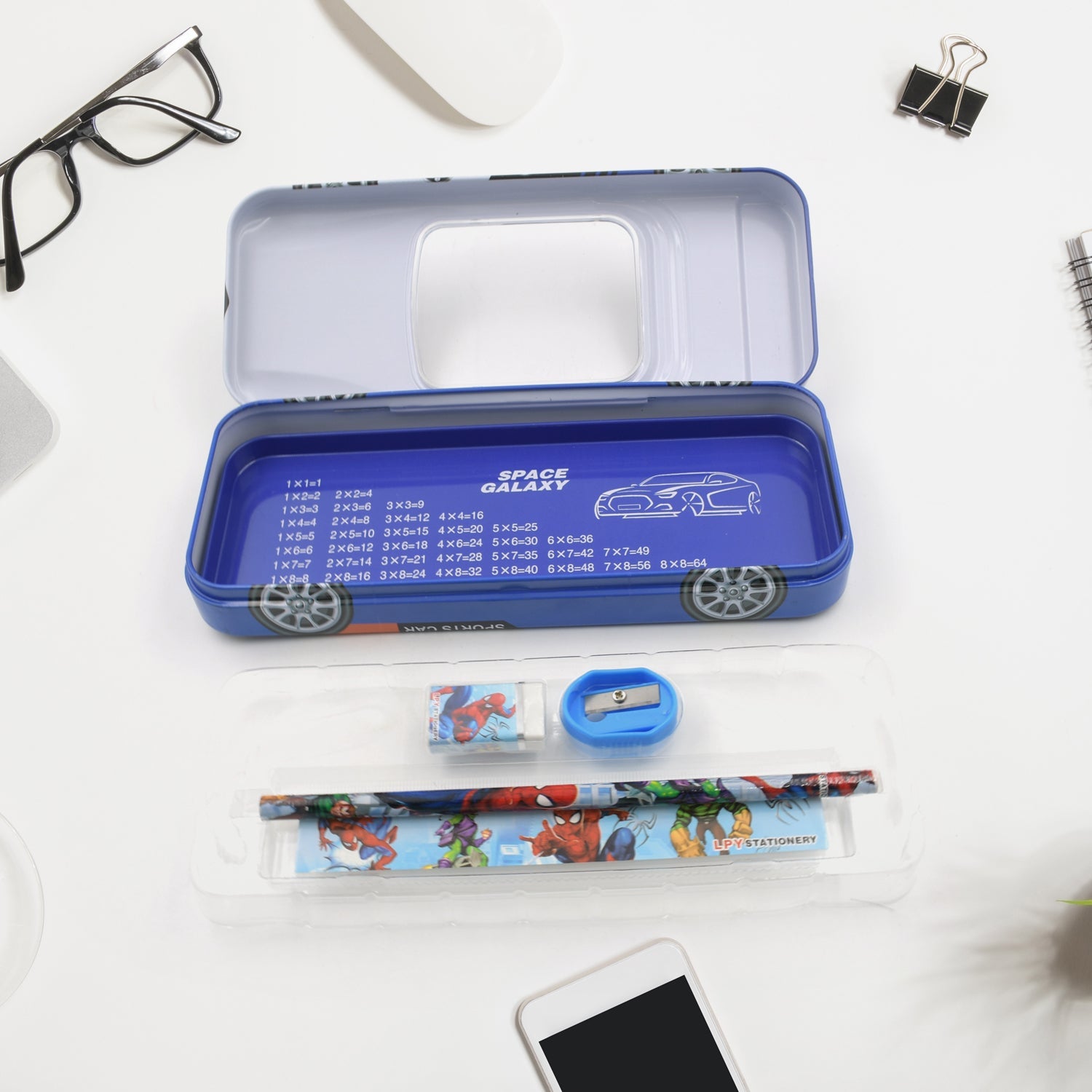 - ATTRACTIVE SHAPE : This Metal Pencil Box Provides Better Safeguarding To All Personal And Valuable Items With 1 Sharpner, 1 Pencil, 1 Eraser, 1 Scale