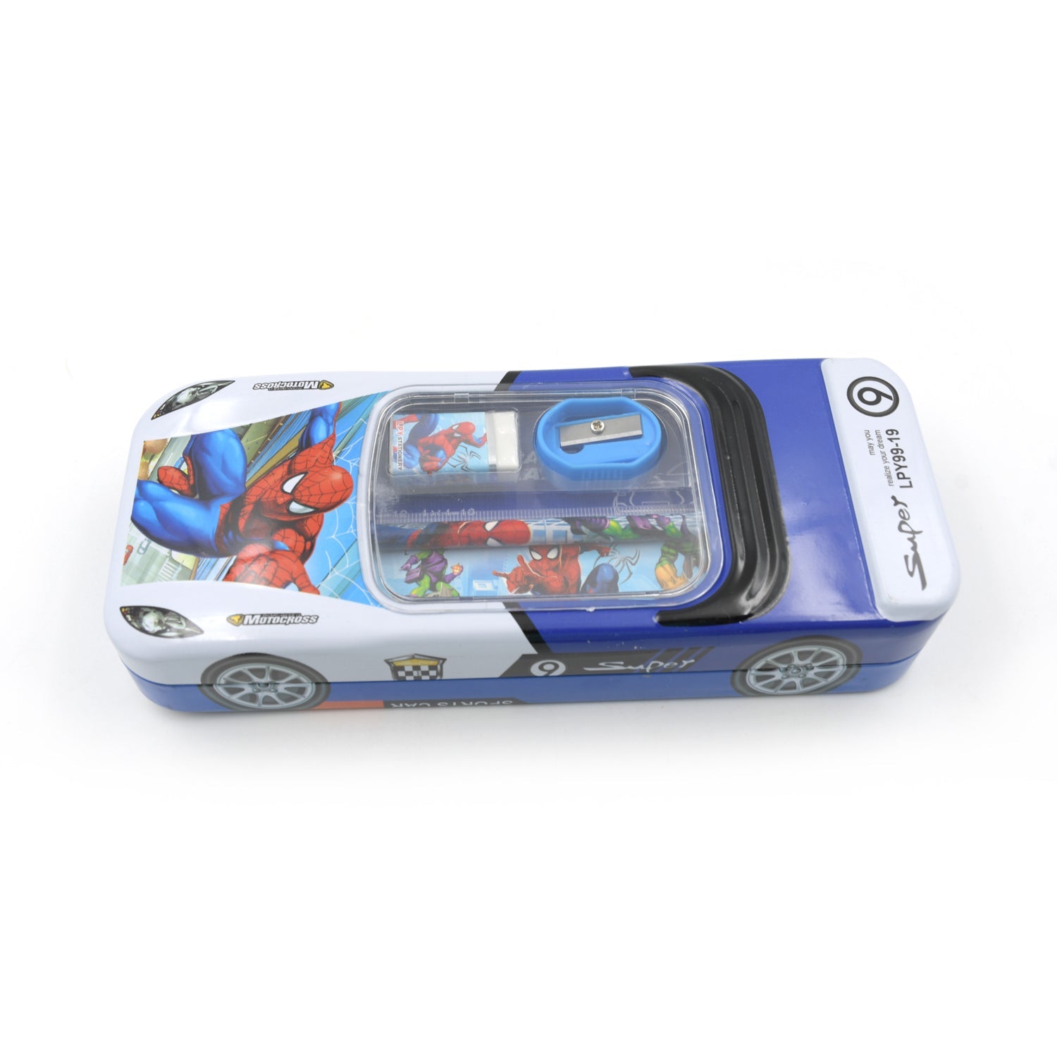 4362 Car Shape Metal Compass Box, Pencil Case With Sharpner, Eraser, Pencil & Scale for Kids Stationery Compass Box, Stationery Gift for School Kids Compass, Pencil Box, Birthday Return Gift for Kids (5Pc Set)