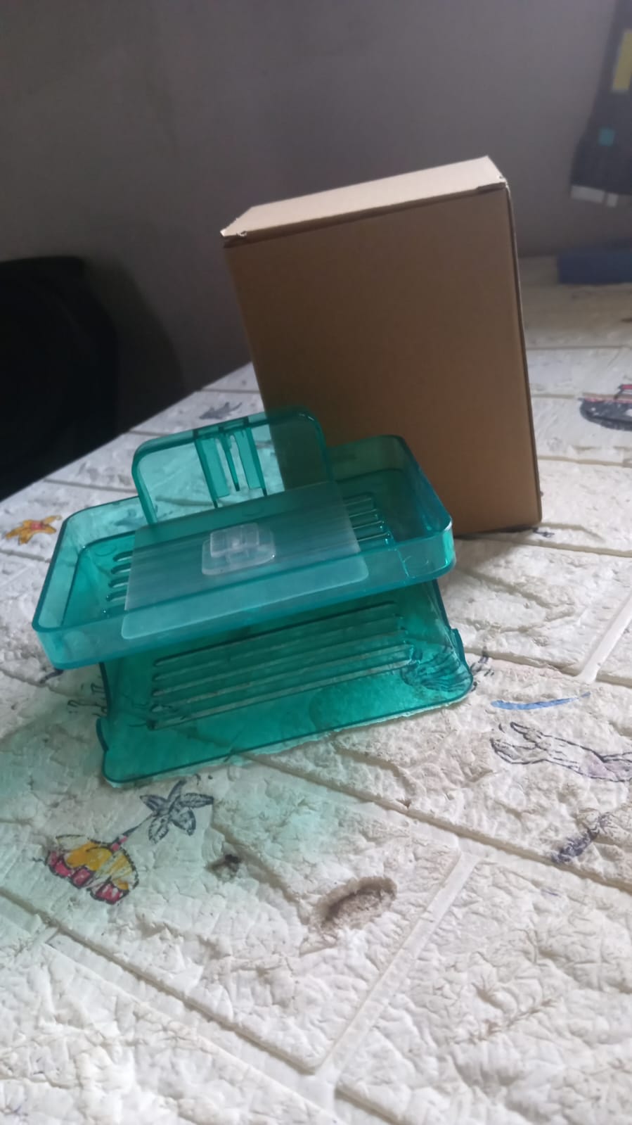 - Double layer Bathroom Soap Cases Self-adhesive Hook; Material: High-quality ABS Plastic.