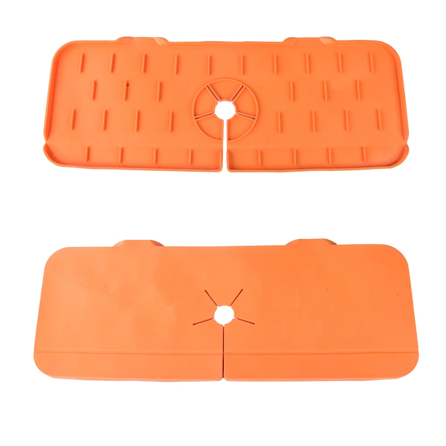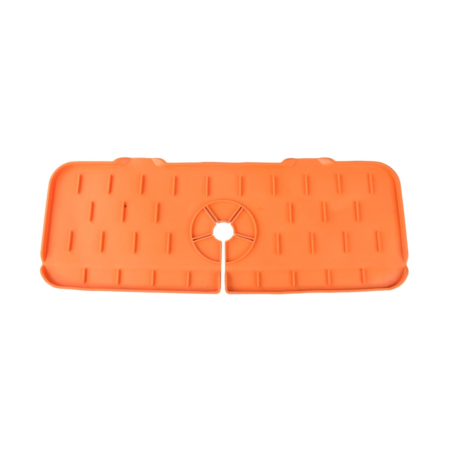 - A sink water splash guard mat specially designed for faucets, the silicone sink faucet splash guard is a labor-saving way to upgrade your kitchen sink. Our silicone faucet splash guard has a raised lip to drain water to the sink. Keep the countertop clean and dry.
