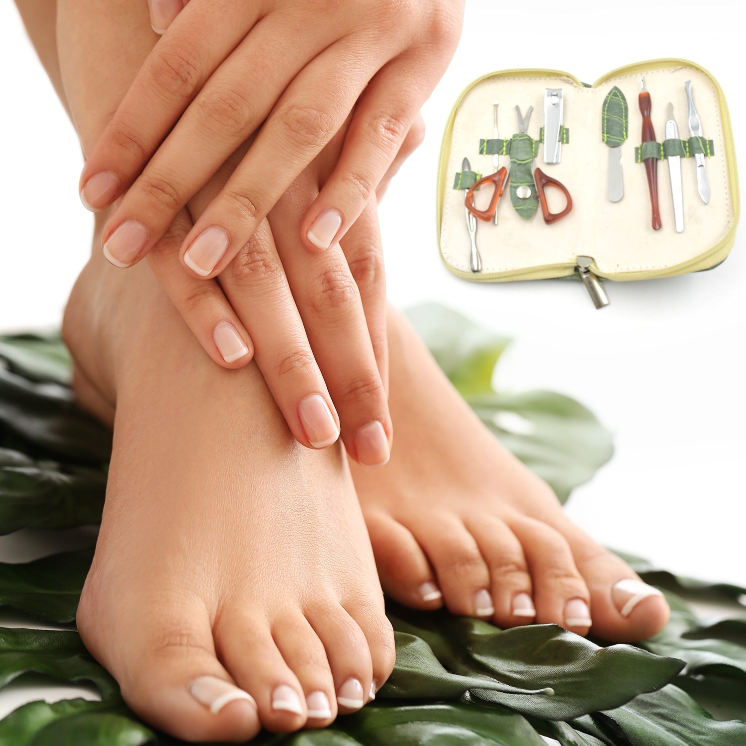 - 8-piece manicure and pedicure nail clipping set for personal use or travel.