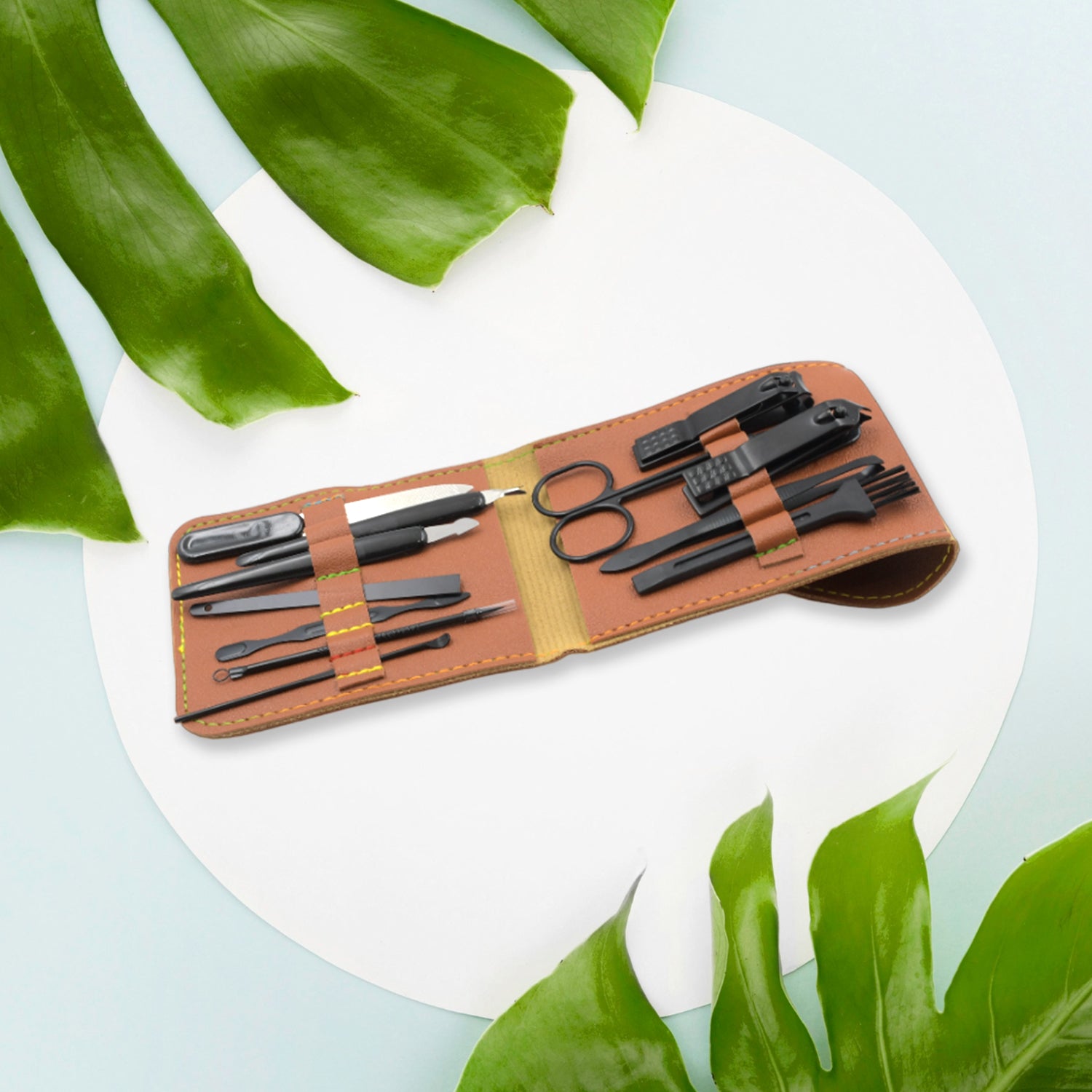 6987 Grooming Kit, Manicure Set Portable Stable Practical Durable with PU Leather Case for General Purpose for Face Treatment for Manicure for Pedicure, Nail Clipper Tool Set (12 Pc Set)