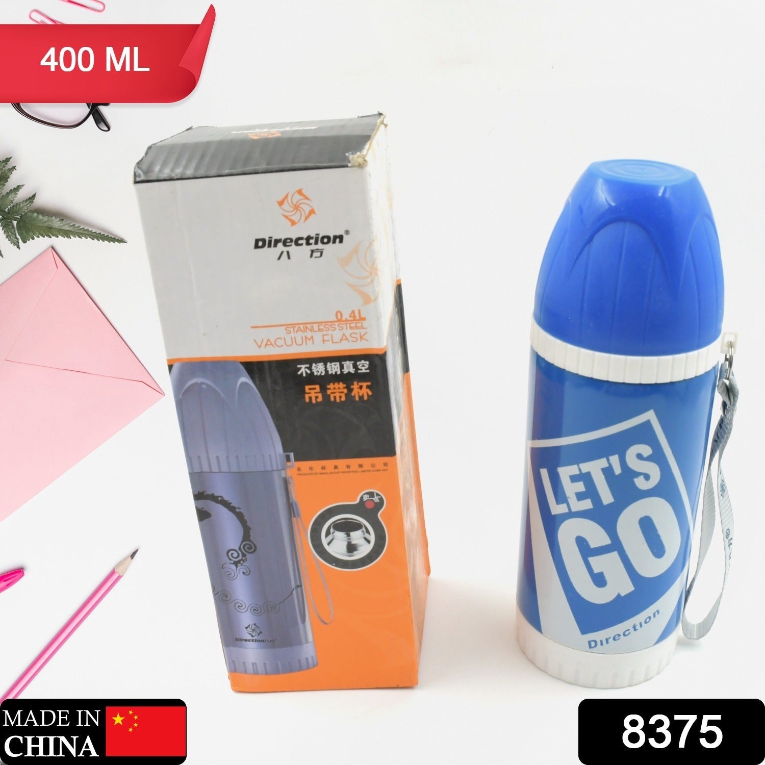 8375 Stainless Steel Thermos Flask Insulated Water Bottle, Stainless Steel Vacuum Bottle with Cup Lid – Thermos for Hot & Cold Drinks or Food-Thermos for Travel, Water/Coffee/Tea Mug Vacuum Thermos Bottle (400 ML)