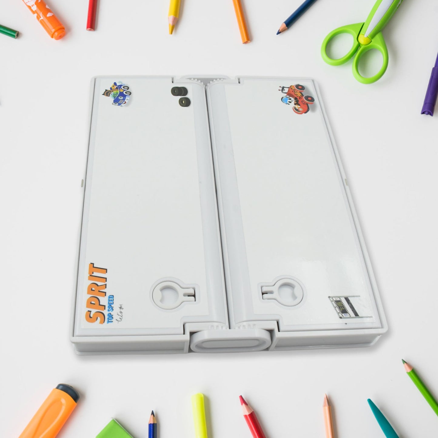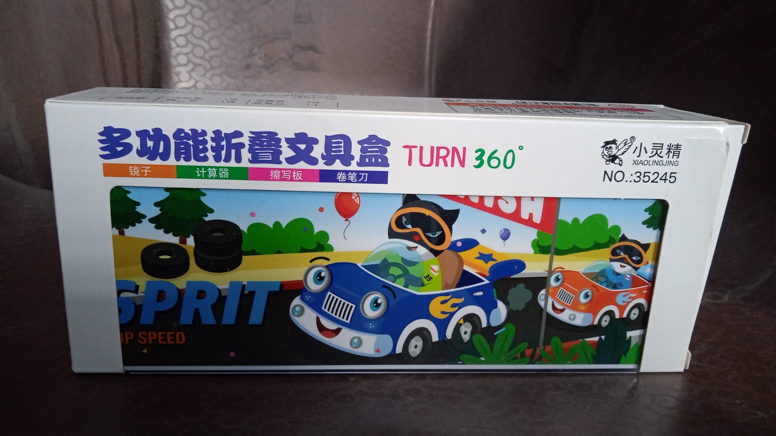 360 Degree Rotating Pencil Box With White Board Marker And Duster 2 Compartment Box Sharpener & Calculator Best Gift For Student