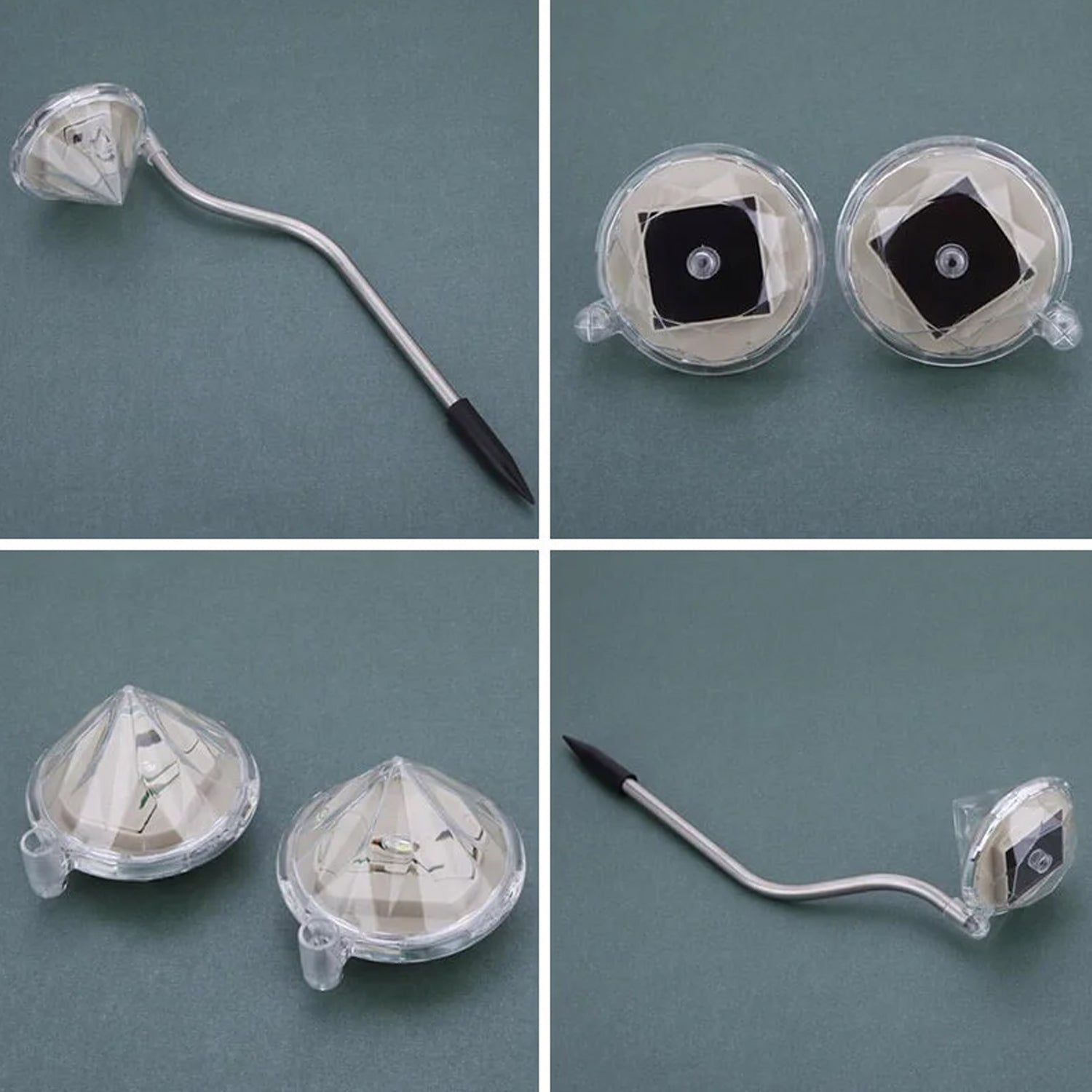 - STUNNING OUTDOOR SOLAR LIGHTS - These diamond solar pathway lights feature a colour-changing design. These decorative garden light stakes project colourful geometric light rays onto nearby surfaces. These solar lights outdoor garden stake is perfect as driveway lights, light beautification for the garden, and many other functions depending on what you want. These solar garden lights outdoor decoration is the best for you!