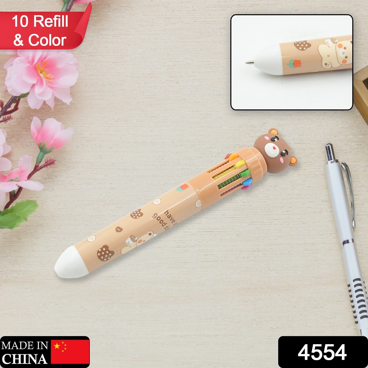 Kids 10-in-1 Color Pens Ballpoint Pen Set for Kids Cartoon Head Writing Pen for School Office Stationary Kit, Teddy Bear (1 Pc)