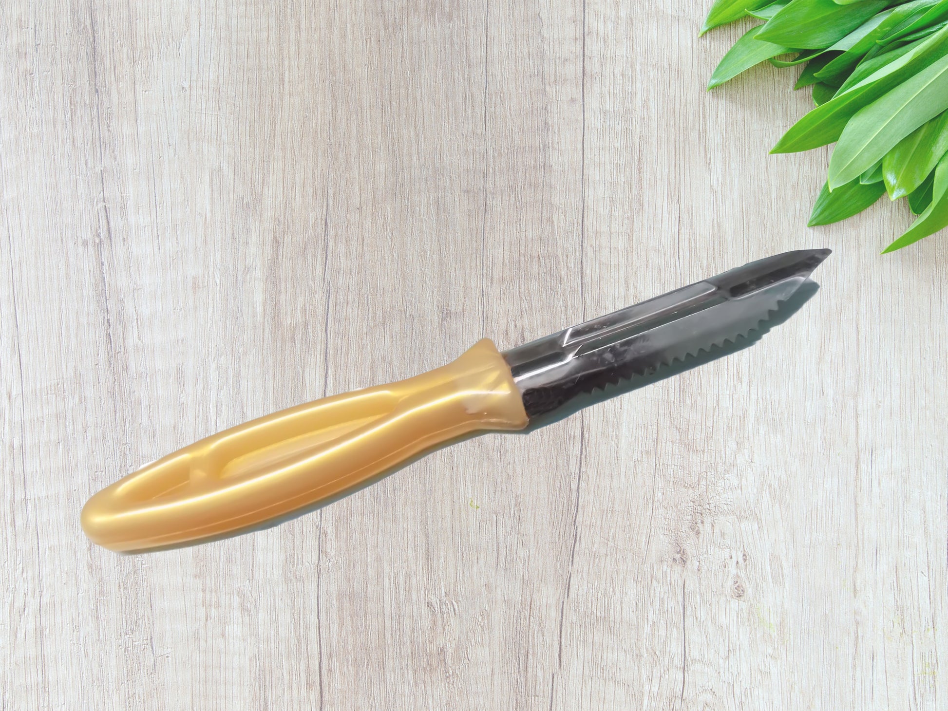 - Knife: Made of stainless steel. Knife is the perfect tool for small cutting jobs around the kitchen. Ergonomic handle provides unique support for maximum performance. Environmentally friendly material. A Soft & Sensational Grip.