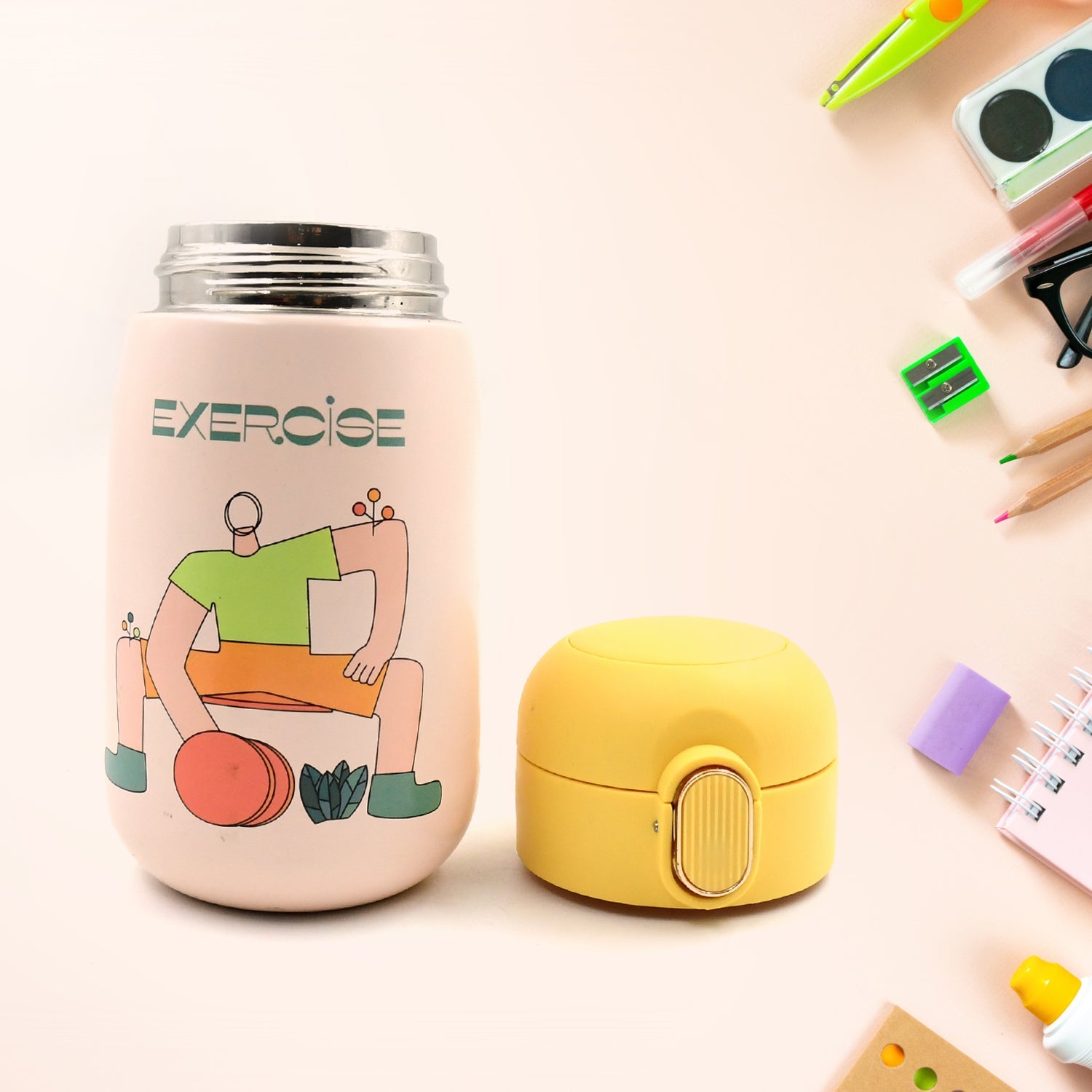 Duck Stainless Steel Water Bottle For Kids Adults Steel Flask Metal Thermos, Spill Proof Cap Closure, BPA Free For School Home Office, Drinkware, 400 ML