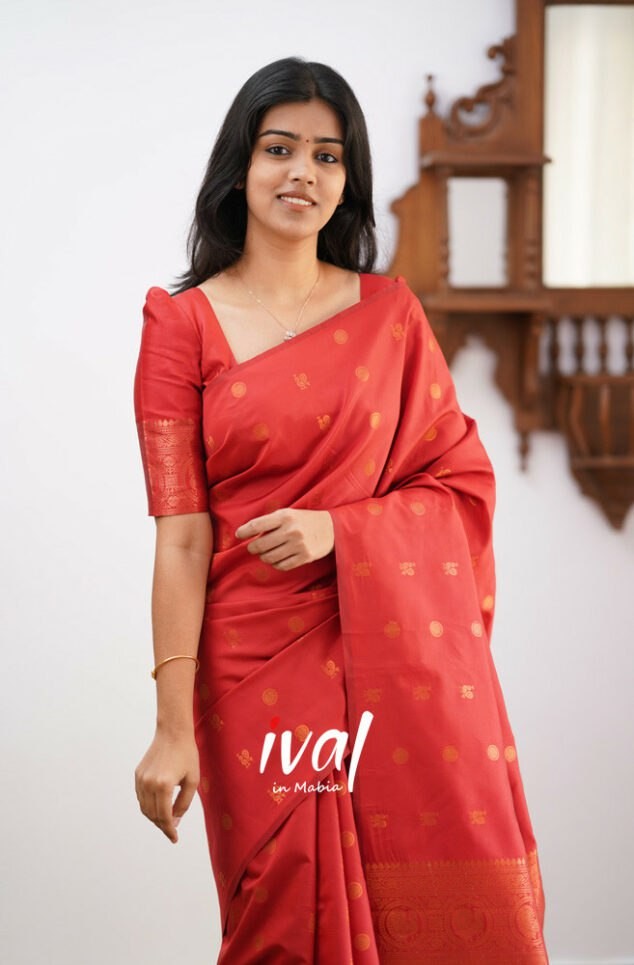 Stylish And Attractive Red Colour Rich Pallu Saree For Women