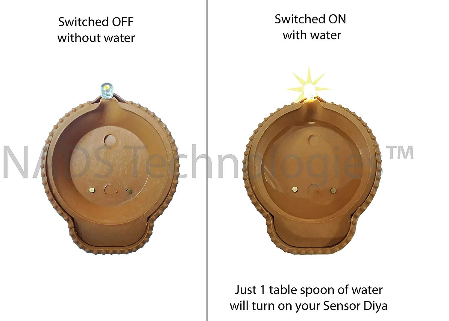Additional Information: Diyas switch on when you put water on them(one spoon of water). Yes, just like oil and ghee mitti Diya they are water diyas. As you drop water they illuminate a warm orange light similar to oil Diya creating a traditional ambiance in the atmosphere.
