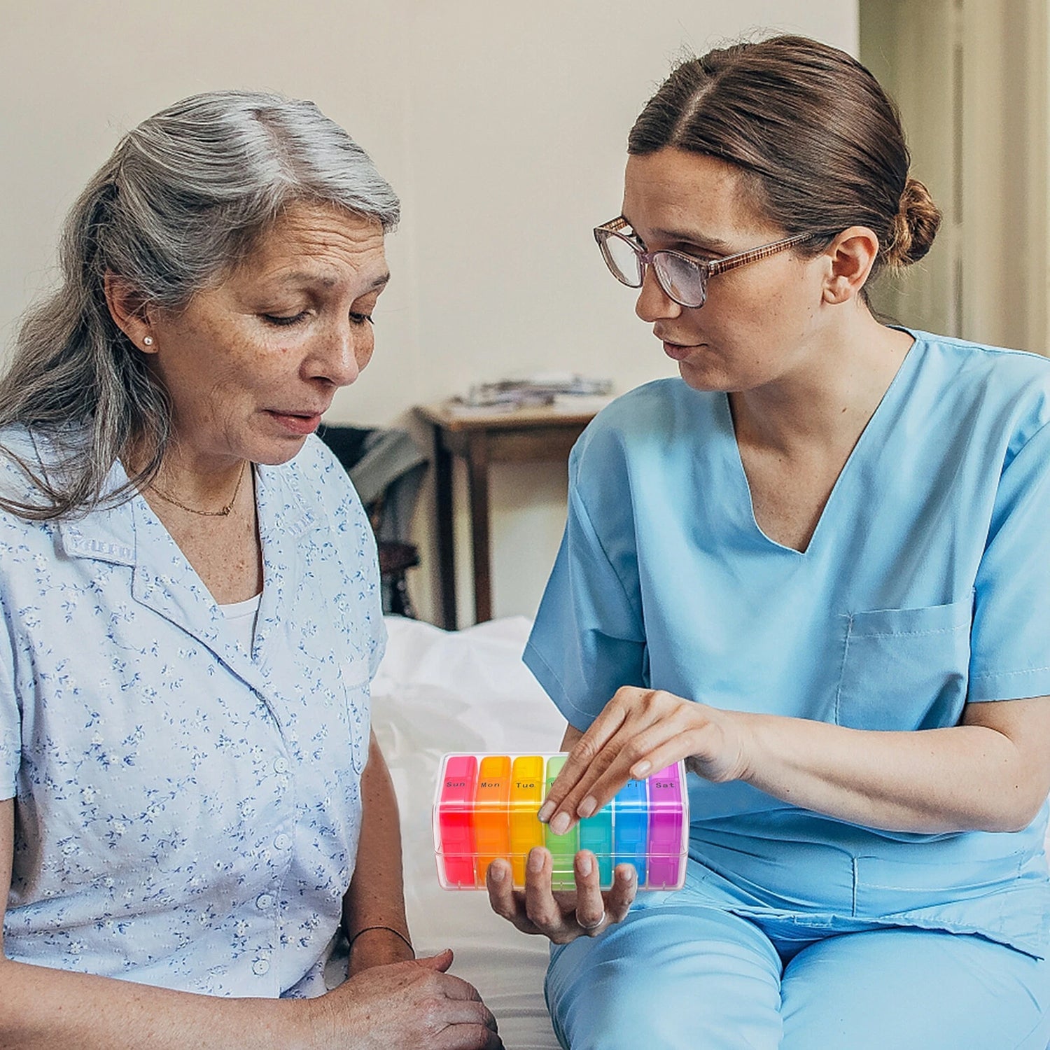 7 individual day-labeled pill compartments (Sun to Sat)