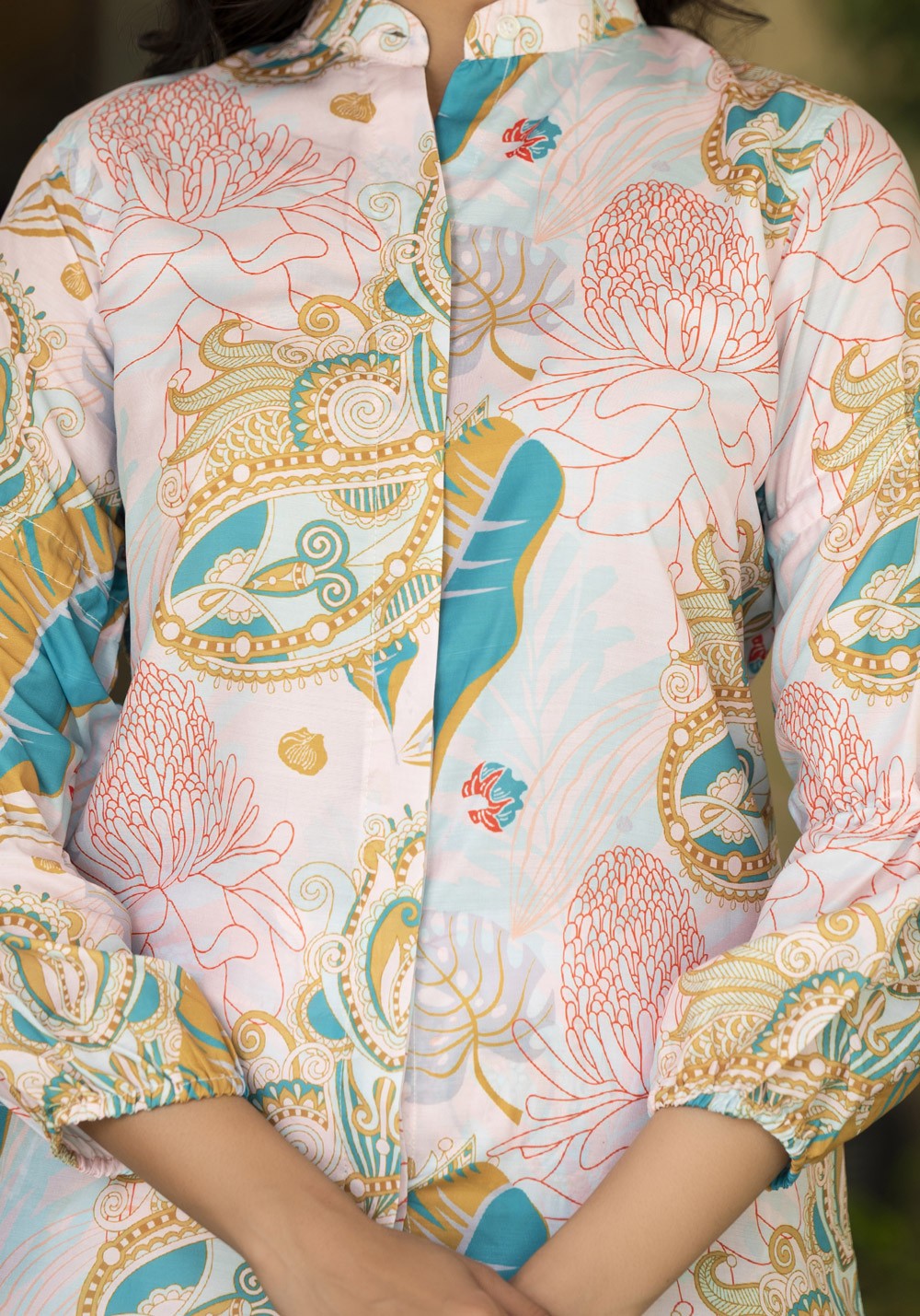 White Digital Printed Cord Set For Women