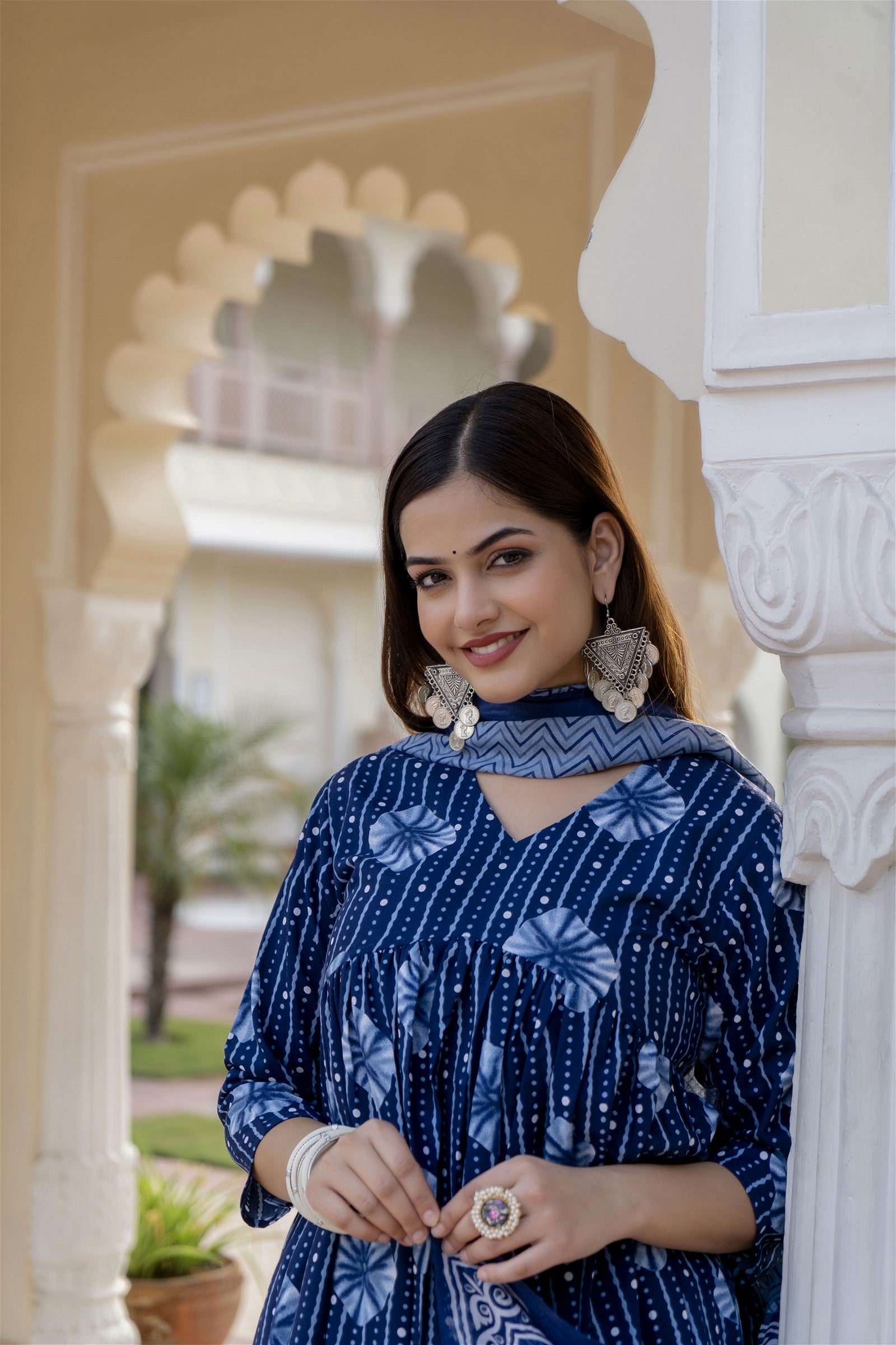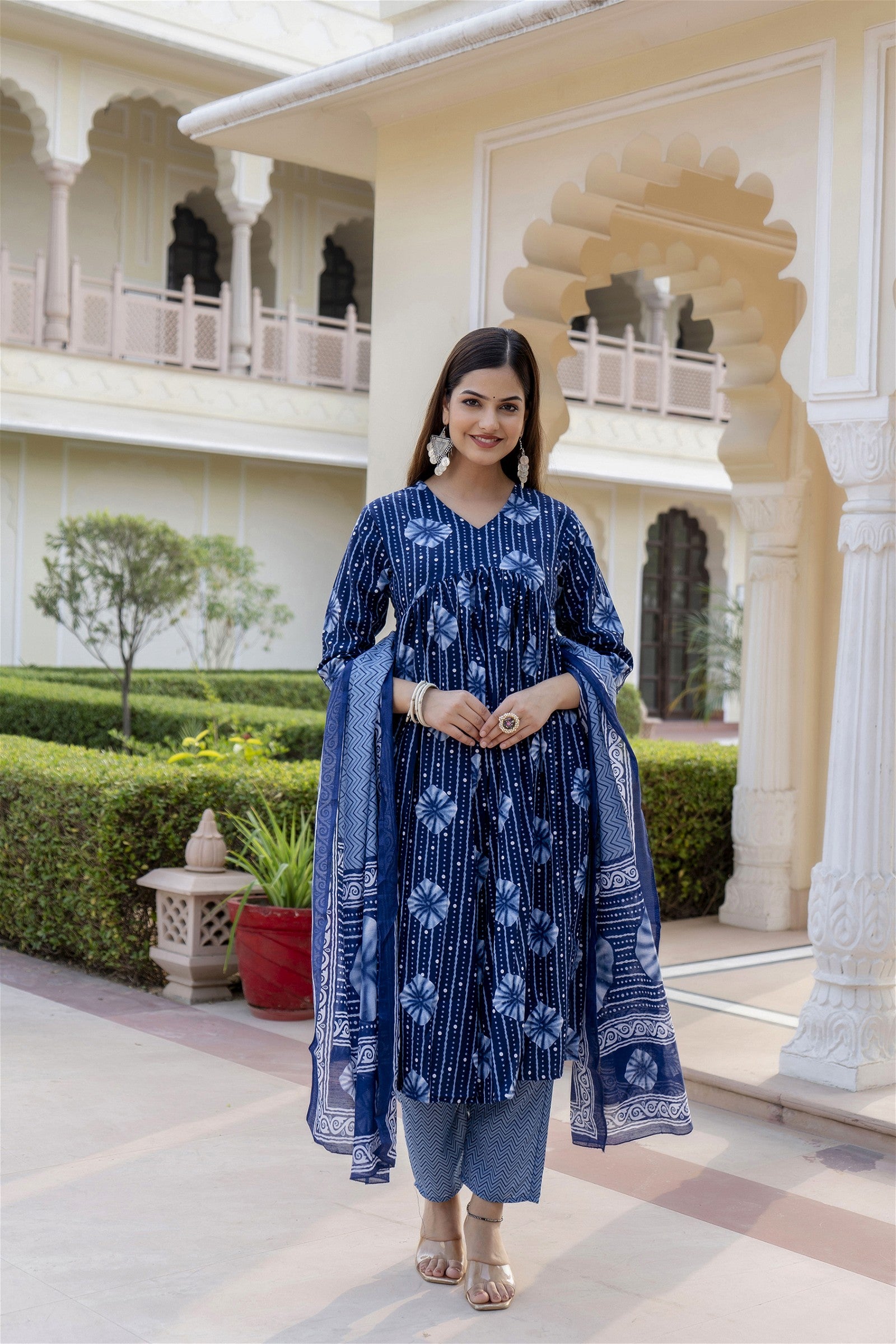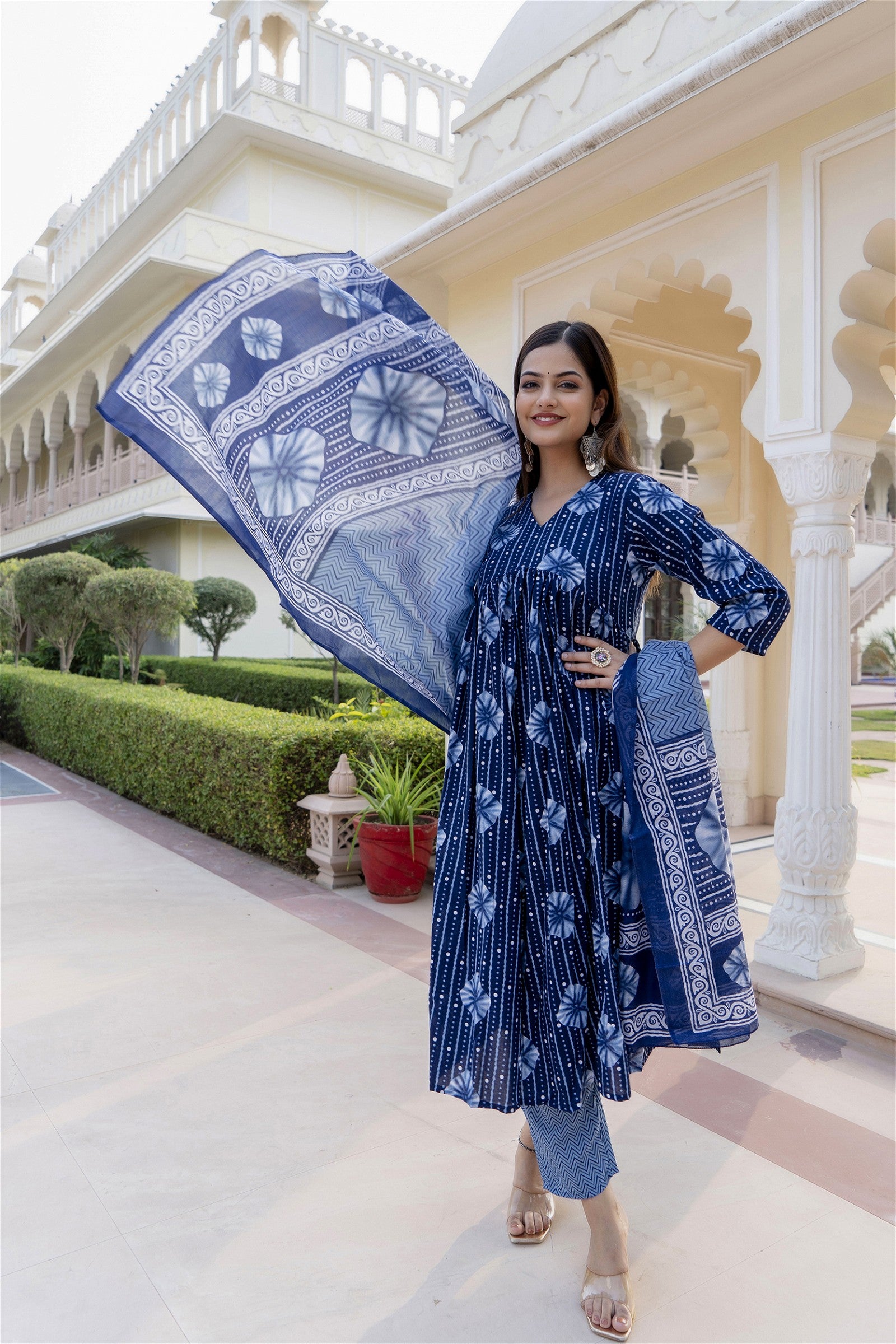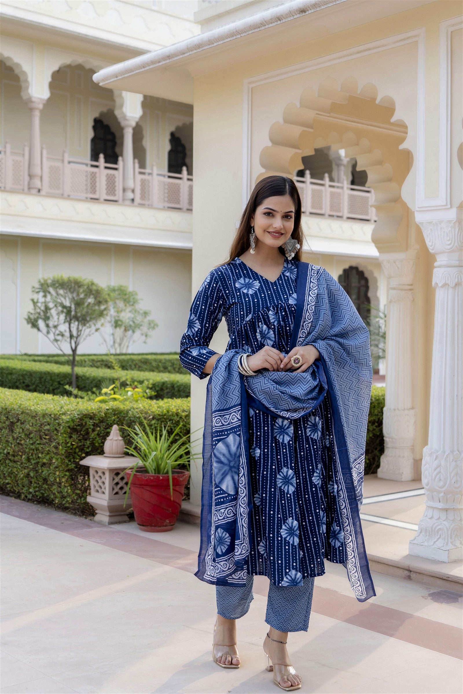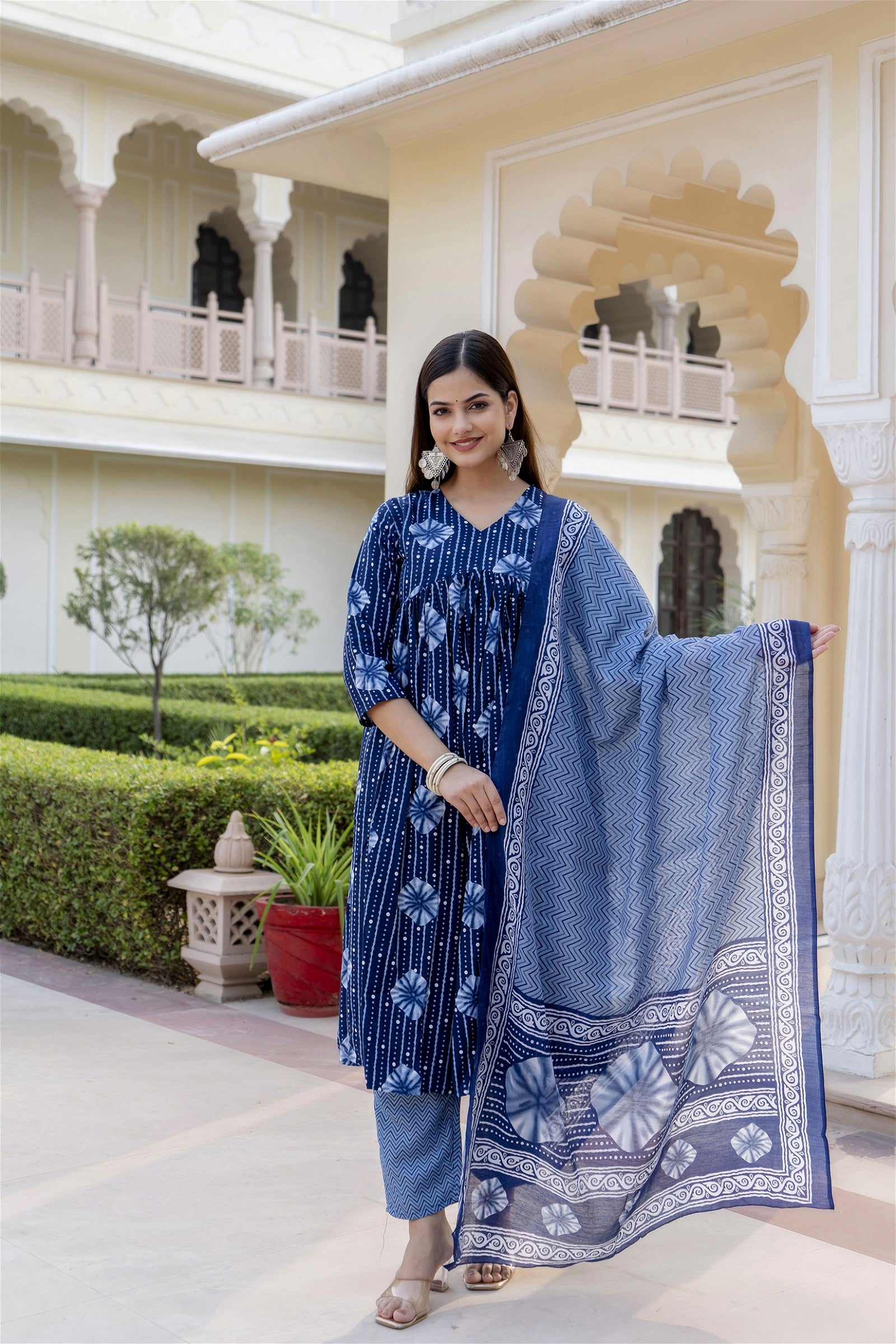 Women Blue Indigo Kurta and Pant Set With Dupatta
