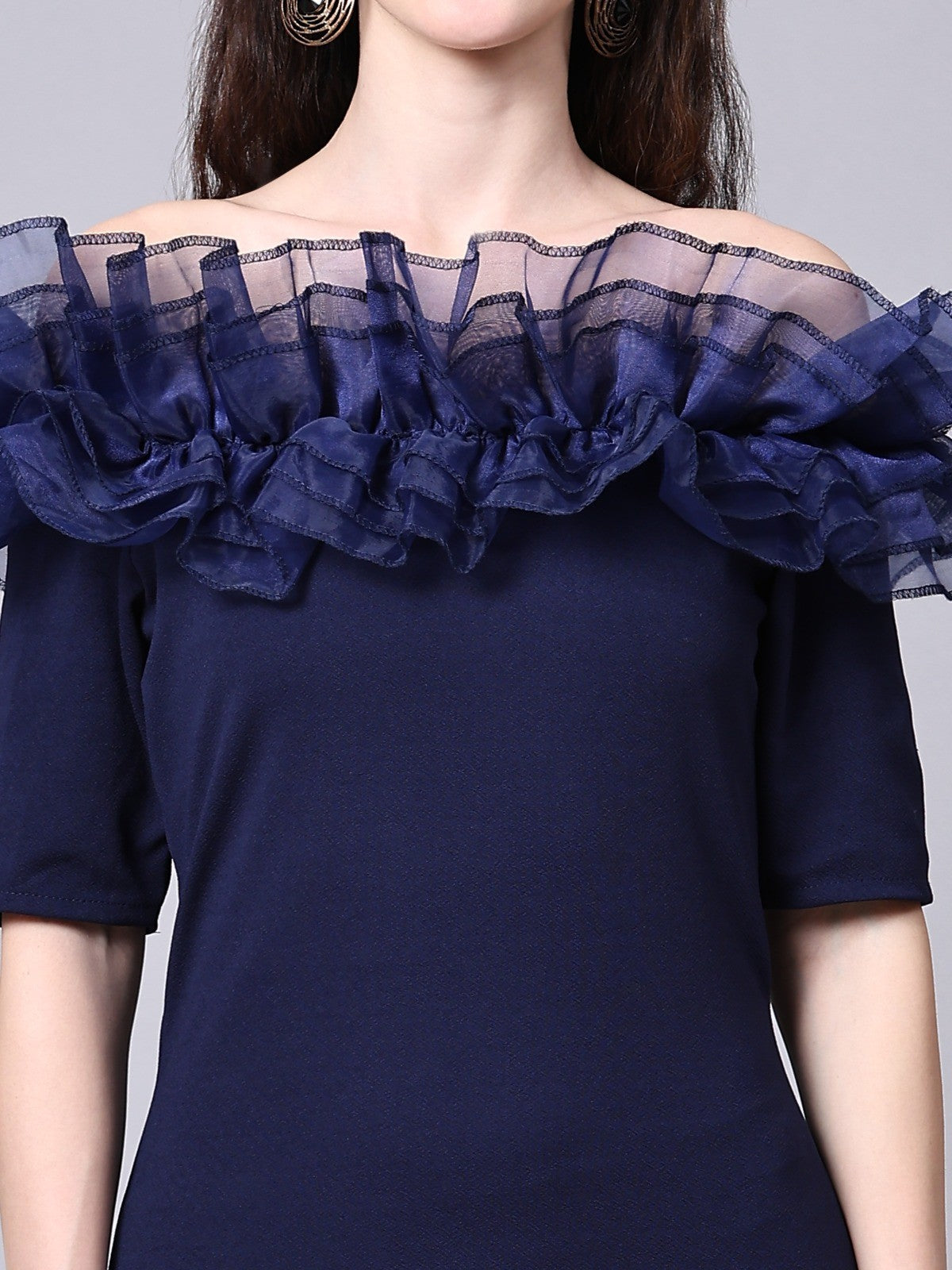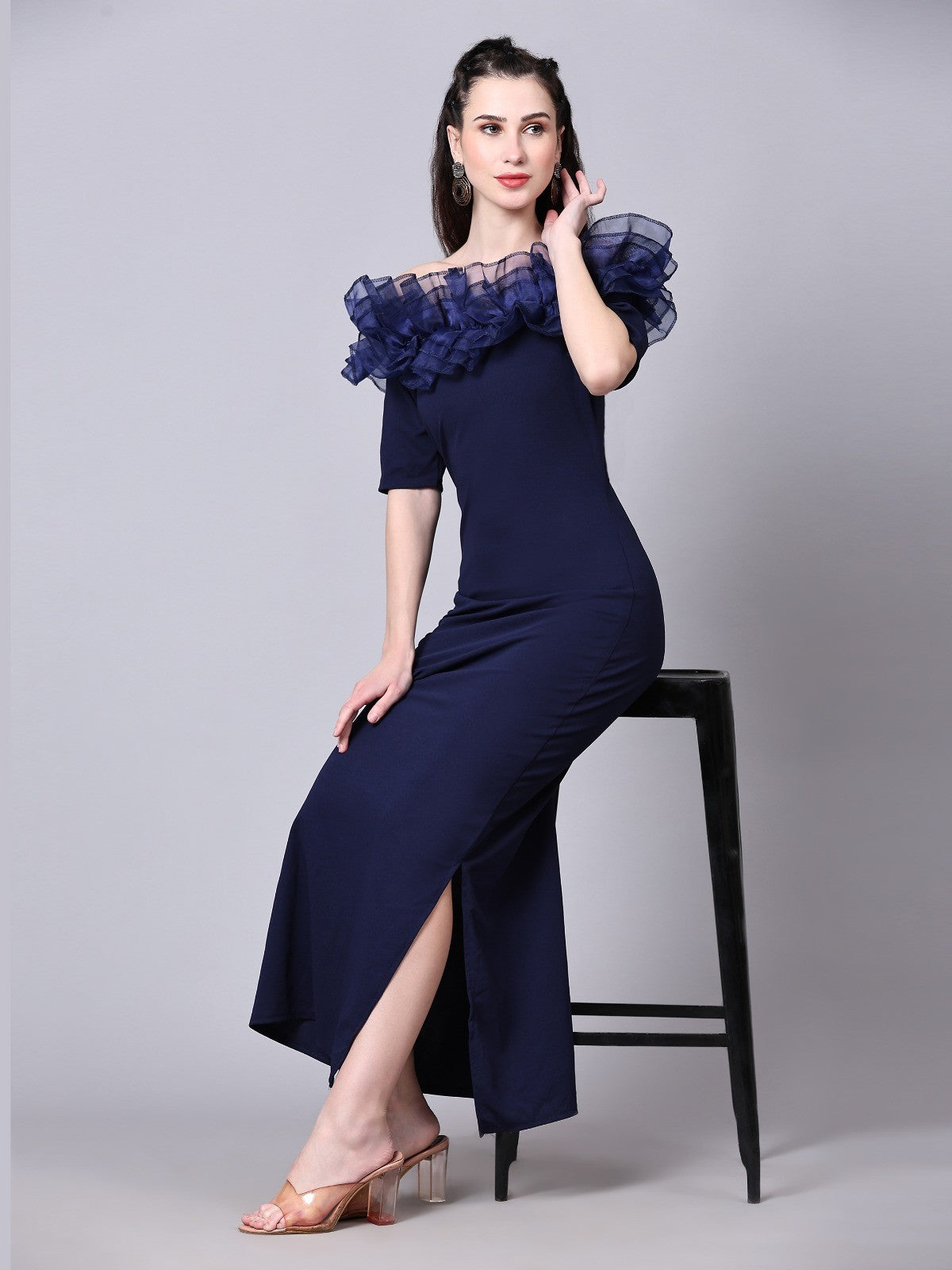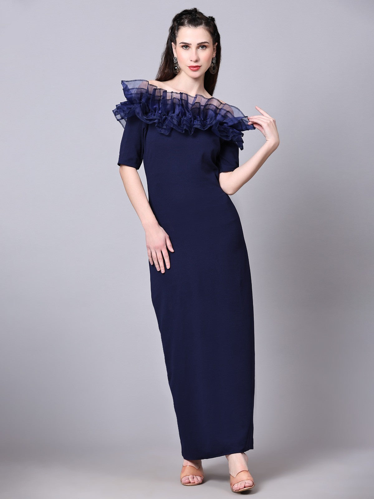 Women Stylish Solid Cotton Lycra Short Sleeve Maxi/Full Length Bodycon Navy Blue Dress