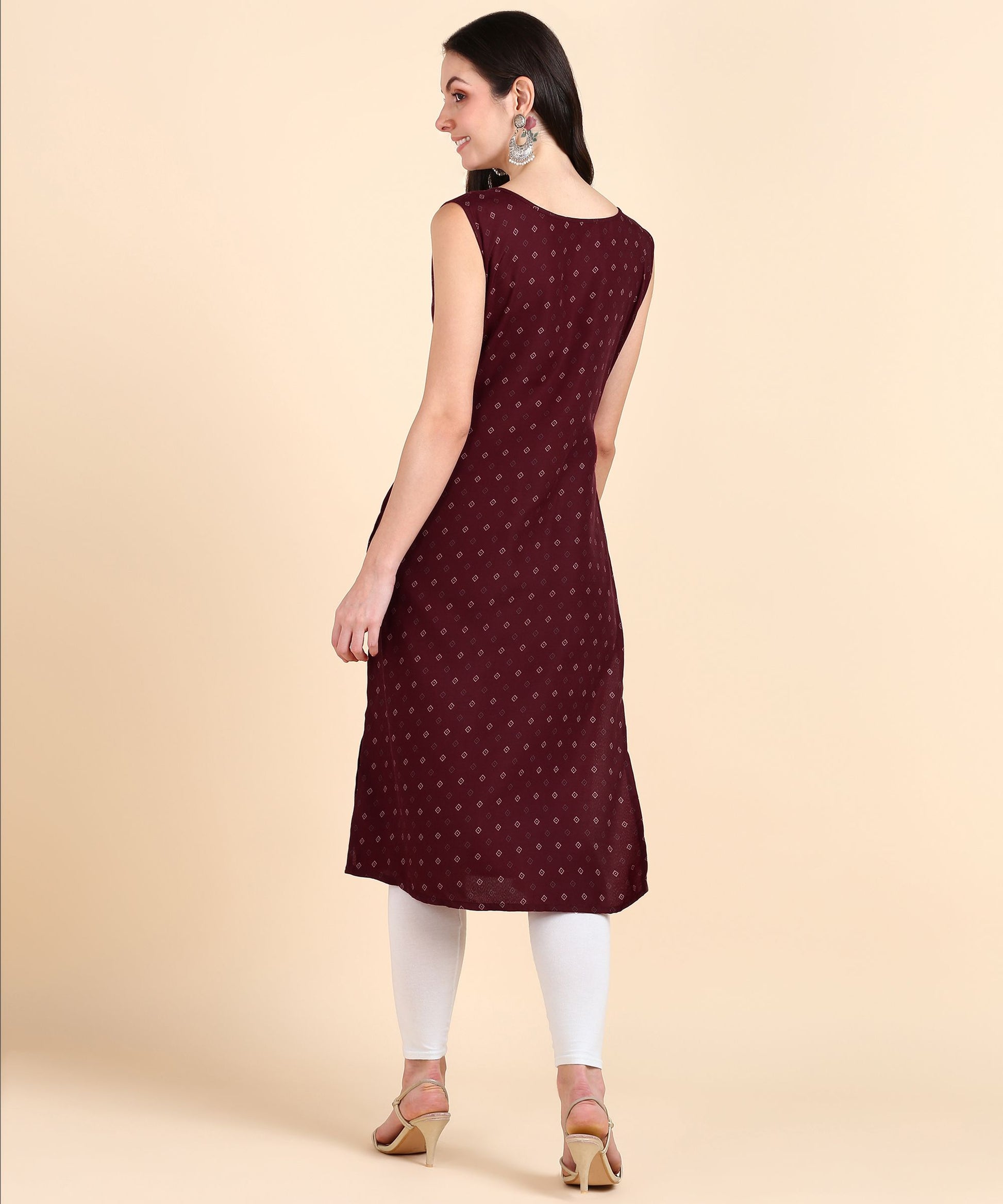 Women's Cotton Blend Sleeveless Casual Fancy Long Kurtis