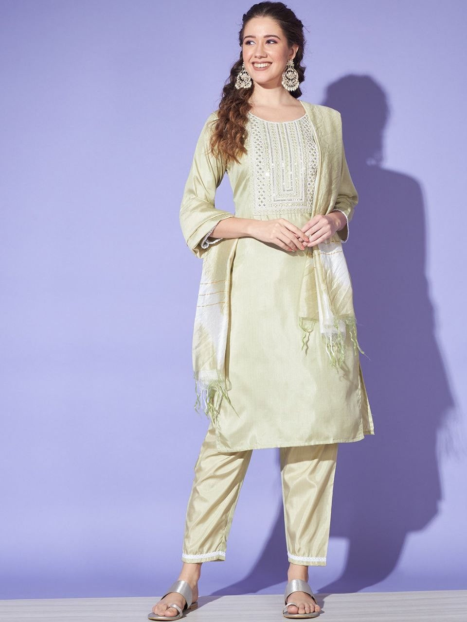 Women's Green Colour South Silk Kurta Pant With Dupatta Set