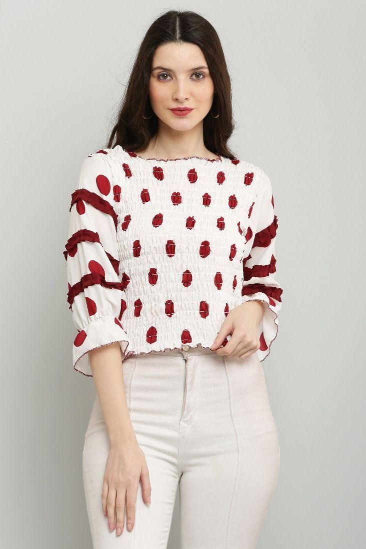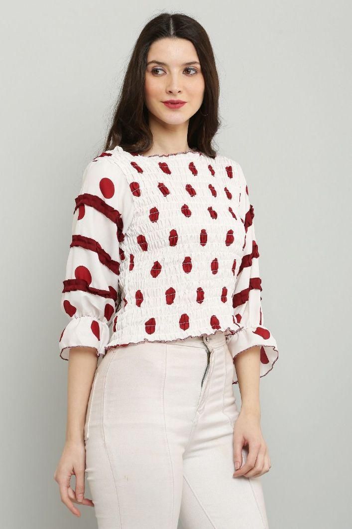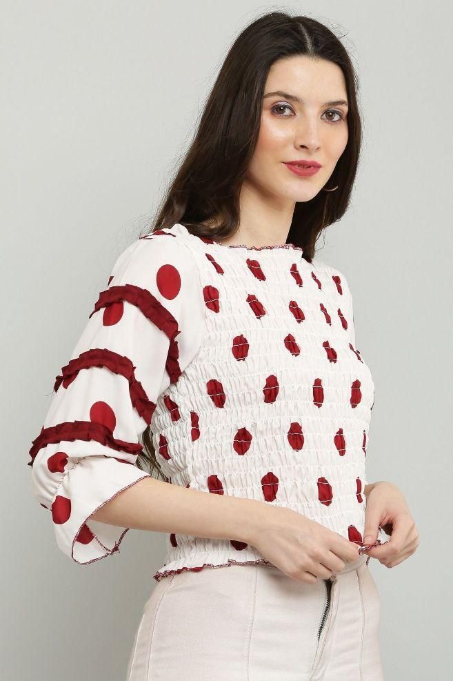 Women's Polyester Polka Dot Print Top