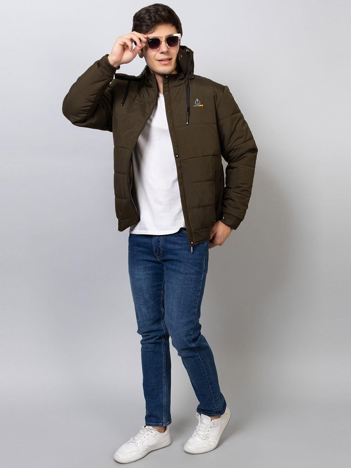Product Name: Xohy Men's Full Sleeve Bomber Hooded Olive Jacket